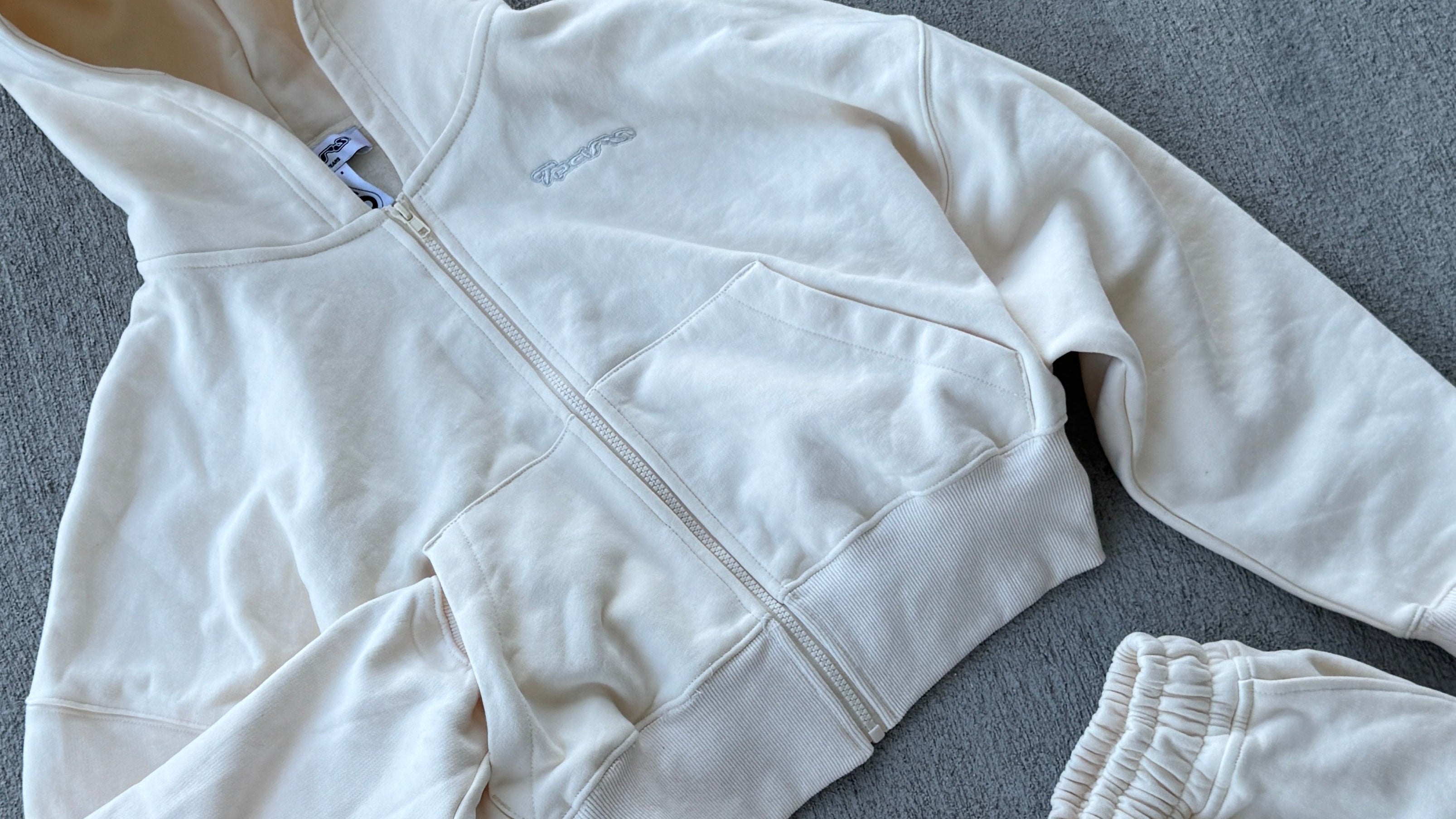 "LOOSE FIT" ZIP HOODIE OFF WHITE